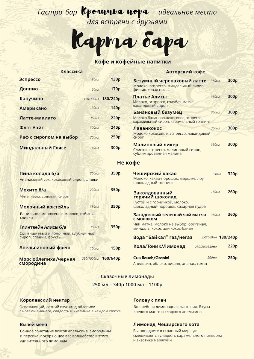The menu at Krolich'ya Nora offers an intriguing selection that caters to diverse palates. Patrons rave about unique offerings like the “тунецогурец” (tuna cucumber) and “трюфельный каламбур” (truffle gambit), showcasing a playful, innovative approach to traditional flavors. Each dish is not only a feast for the taste buds but also for the eyes, as the thoughtful presentation turns every meal into an art form. Signature beverages like the delightful “Голову с плеч” lemonade, praised for its refreshing sweetness, elevate the dining experience, ensuring that you’ll be tempted to lose your head over its taste.
